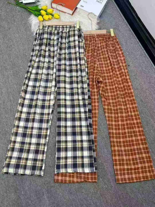 全清价6.9元气质薄绒直筒格子裤宽松显瘦高腰秋裤,独...