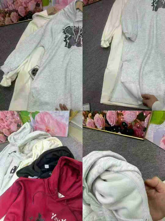 连帽卫衣宽松大码加绒加厚保暖中长款过膝连衣裙外套,侧边口袋设计,双层帽子,整款多色多图,还有很多图没拍到,宝宝绒,M-3XL码,独立包装,货品干净,340件左右,11.8清,分货加1