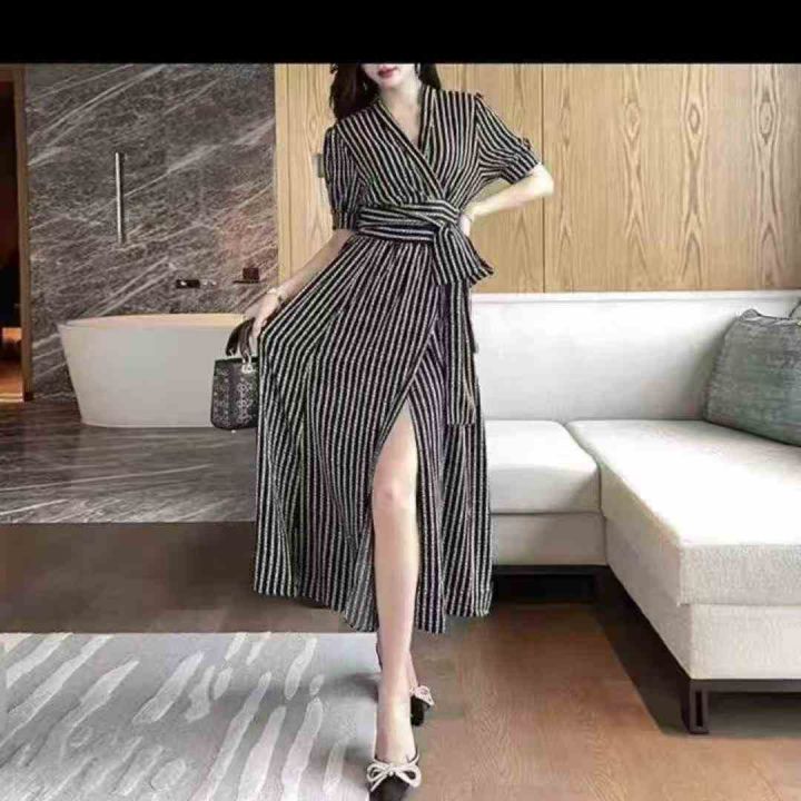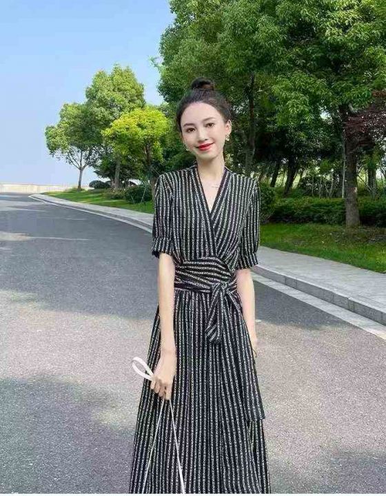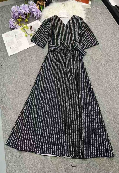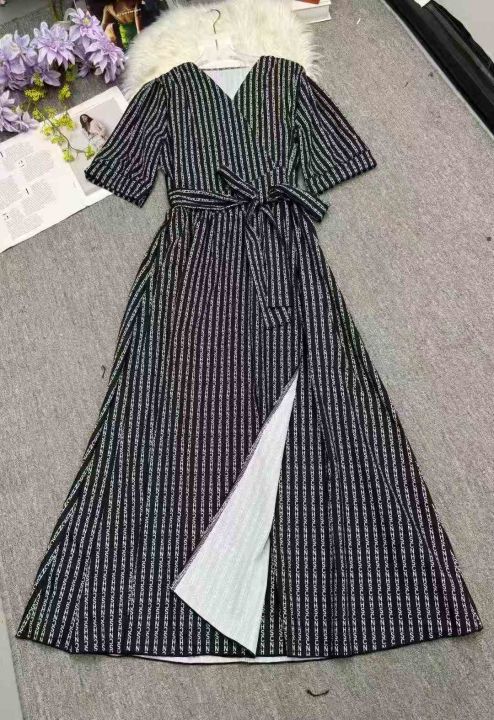 复古法式印花v领显瘦短袖开叉绑带气质长连衣裙,独立包装,码数1-4码,数量382条,1码裙长118厘米,分货加1,(货号0913#44)。 货号:24862