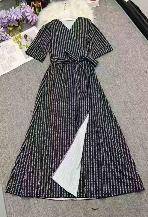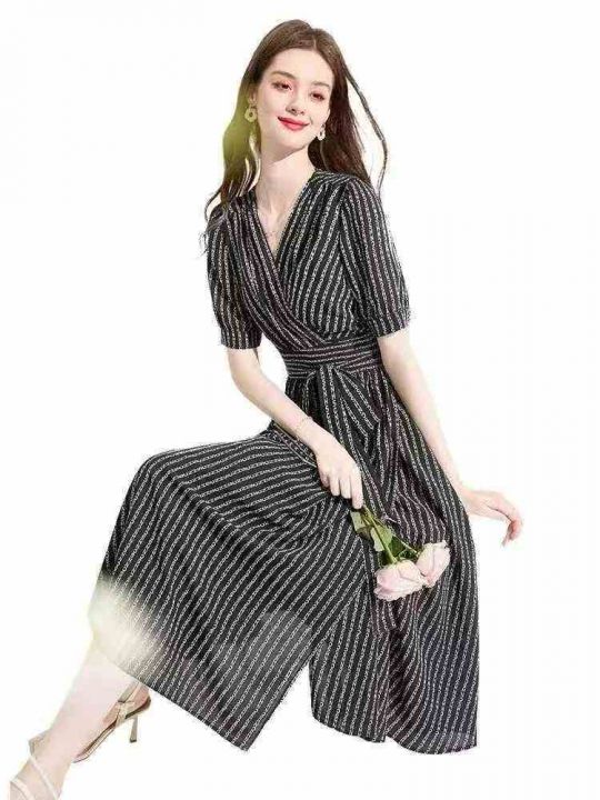 复古法式印花v领显瘦短袖开叉绑带气质长连衣裙,独立包装,码数1-4码,数量382条,1码裙长118厘米,分货加1,(货号0913#44)。 货号:1323