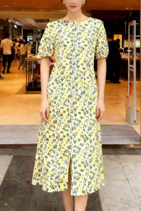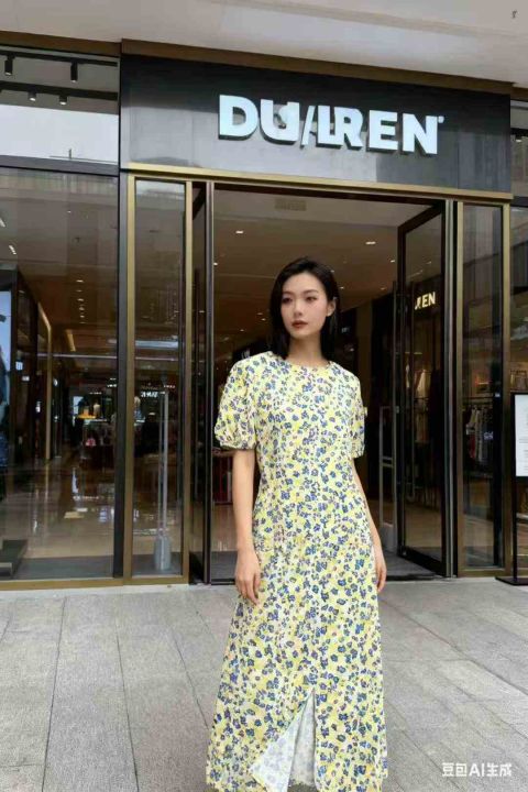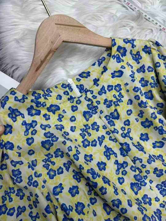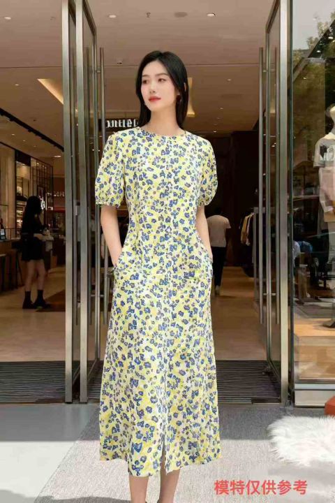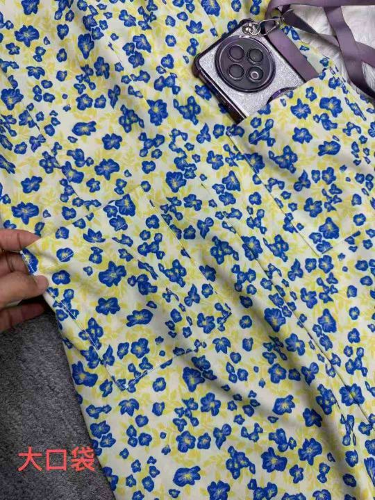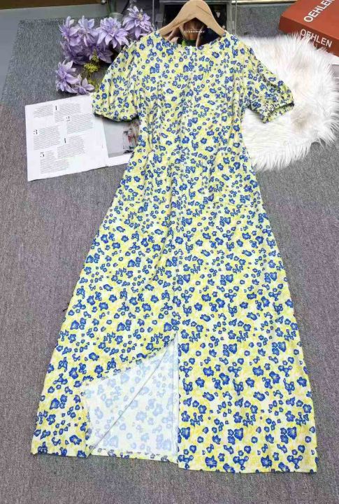 夏装热卖泡泡袖收腰显瘦气质法式复古碎花开叉过膝雪纺中长连衣裙,整款,独立包装,码数S-2XL,S码裙长110厘米,数量125条,(货号0913#41)。 货号:24862