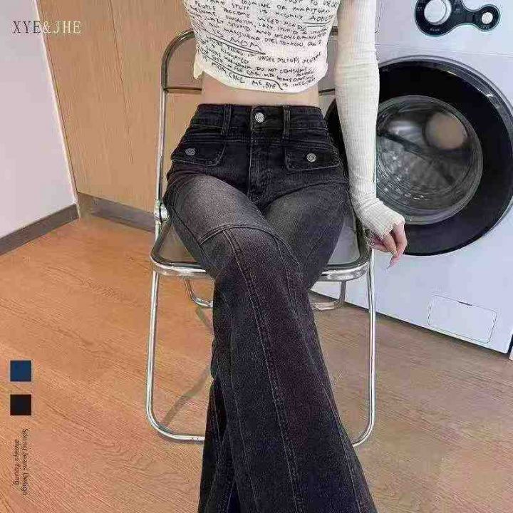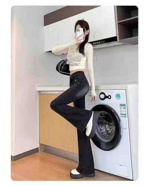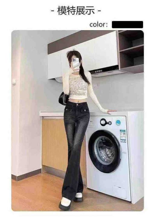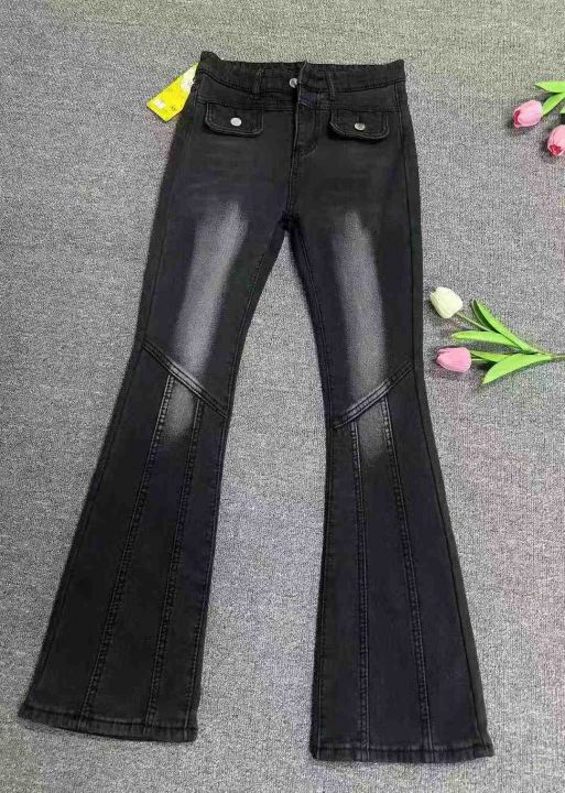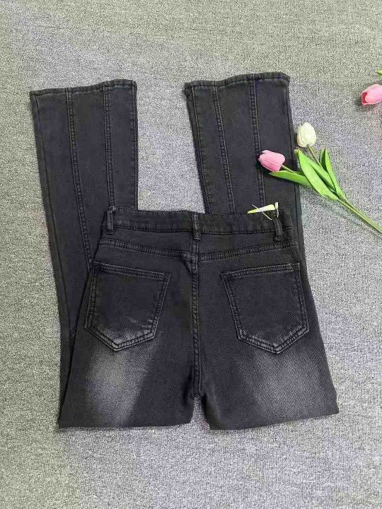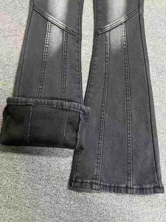2028新款女士黑灰色弹力微喇叭牛仔裤,高腰显瘦修身阔腿马蹄裤,加绒加厚,独立包装带吊牌,126条,XS−XL。 货号:24862