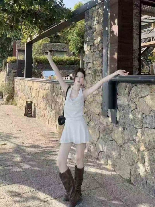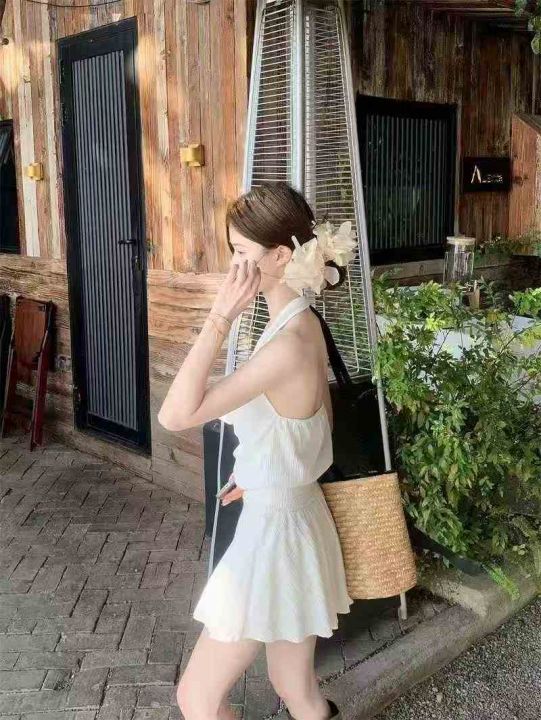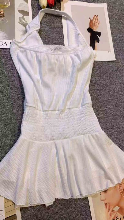 纯欲风辣妹荡领挂脖褶皱收腰连衣裙,[爱心]30件左右,XL码为主,款号#1148,码数S-XL,穿70-120斤,万佳档口货,原包装️无瑕疵,[666]实体店品质。 货号:1323