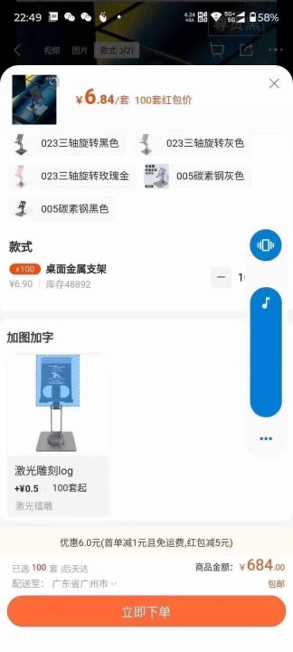 折叠手机支架2000个1.5元秒杀拼手速