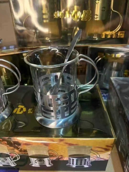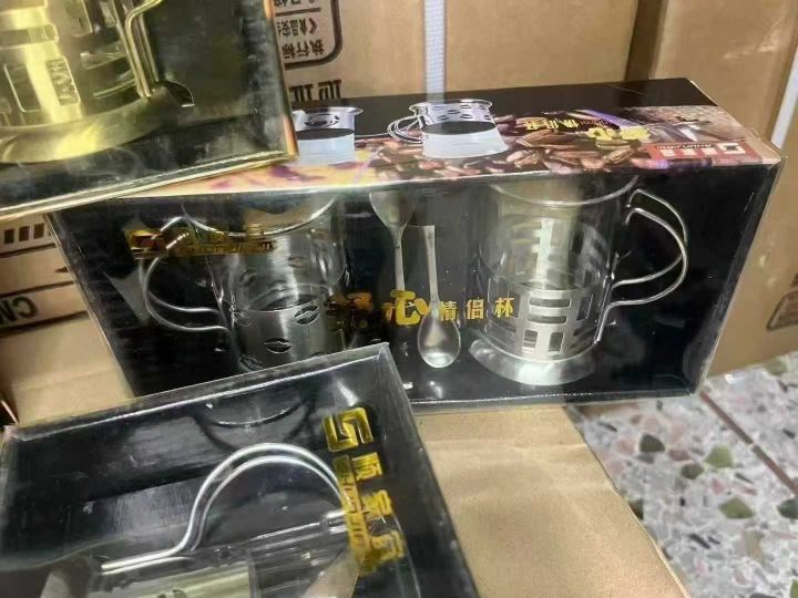 不锈钢玻璃杯咖啡杯200ml防摔耐热金属底座托套法压,原箱原件处理350套左右[烟花][發][庆祝]开价就卖