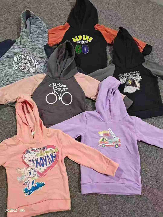 3.5元秒杀,321件儿童纯棉加绒卫衣,小整带点杂,连帽圆领都有,码号M/L/XL或110/120/130,大概穿3~7岁,独立包装或3件一包装,分货➕0.5。