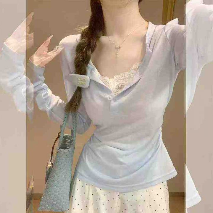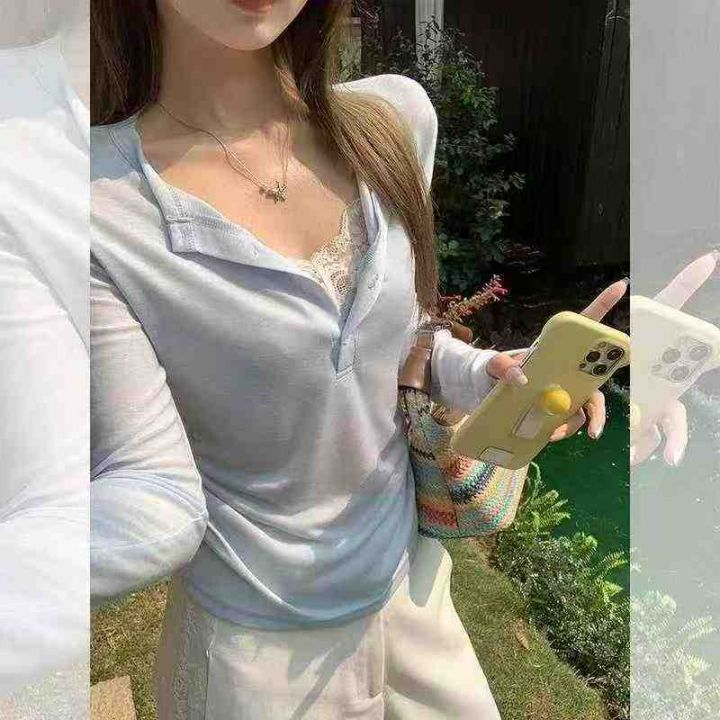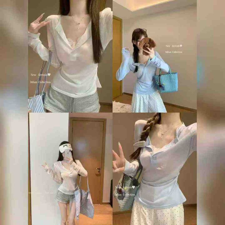 [發]韩系蕾丝假两件辣妹长袖恤890件