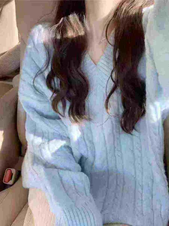 ☆8.8元,女韩版百搭慵懒风加厚V领宽松高级感麻花毛衣...