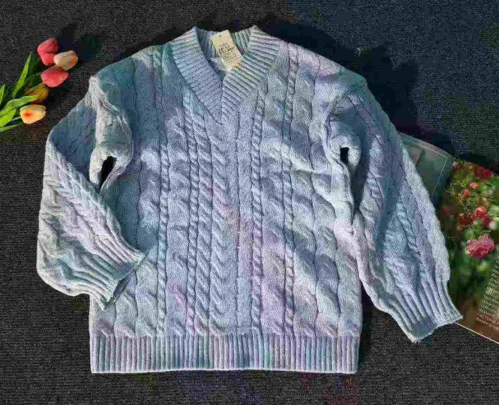 ☆8.8元,女韩版百搭慵懒风加厚V领宽松高级感麻花毛衣,70件,MLXL,独立包装吊牌,全清8.8元