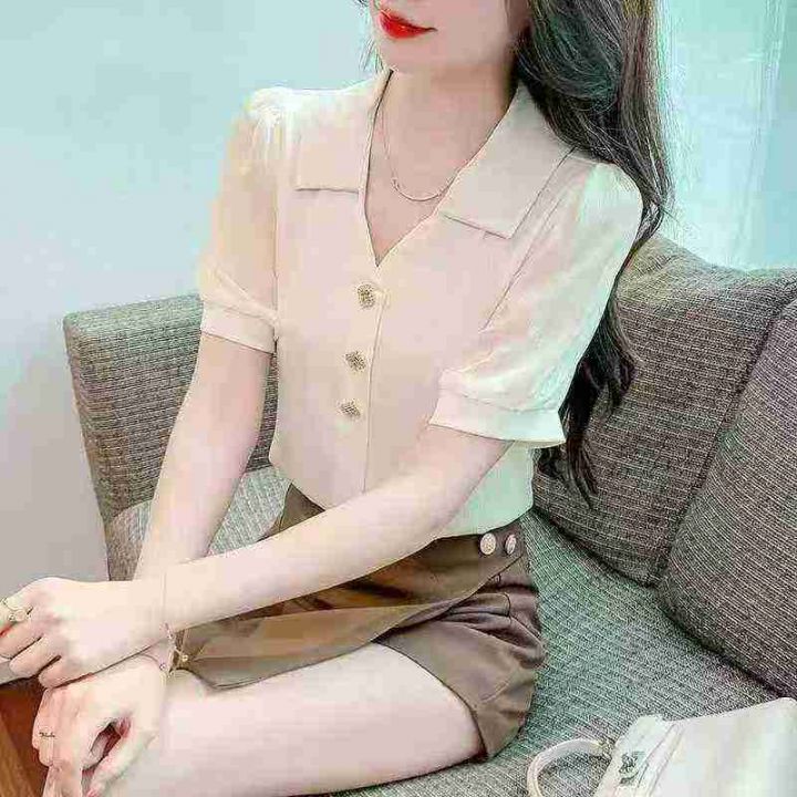 设计新款衬衫小众时尚百搭短袖气质夏季法式衬衣.图片...