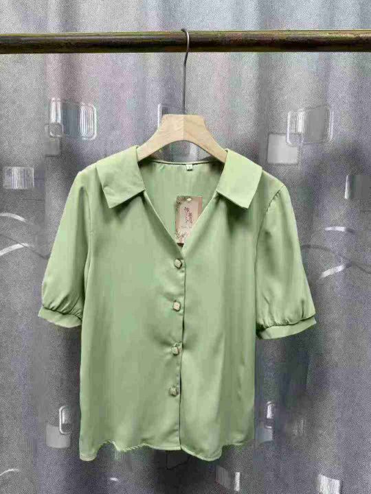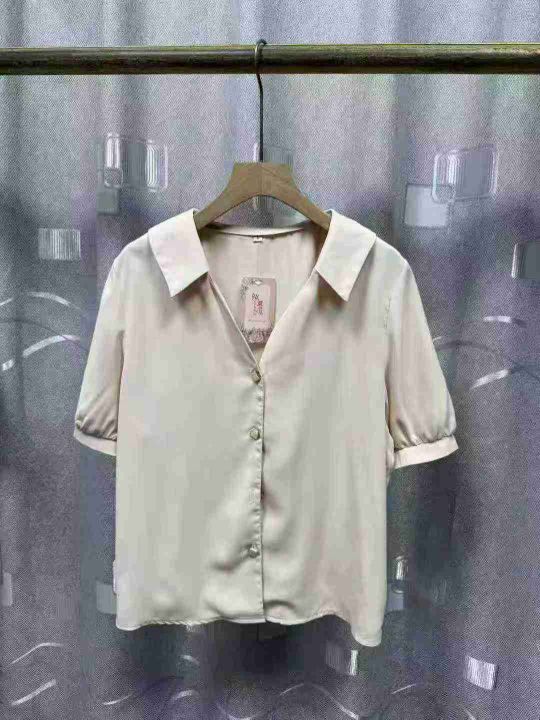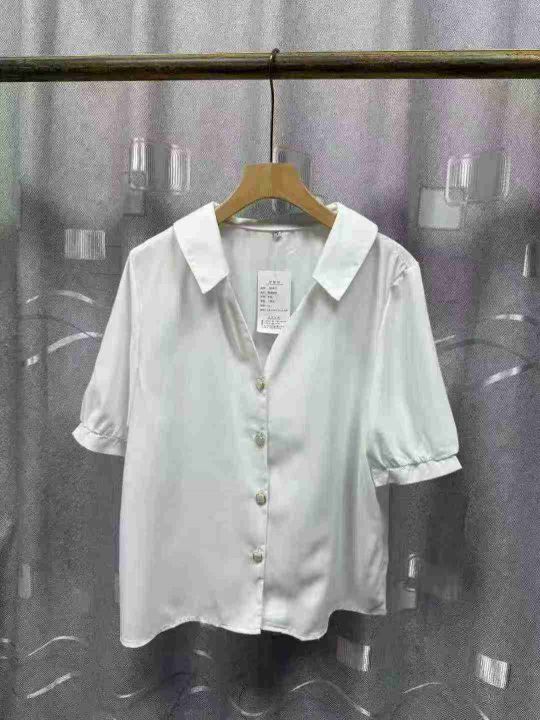 设计新款衬衫小众时尚百搭短袖气质夏季法式衬衣.图片款图片色.独立包装。S一3XL码,150件左右.全清6.8
