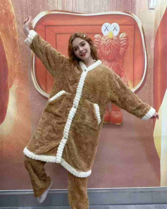 外贸家居套装二件套,珊瑚绒睡袍高级睡衣浴袍套装,可...