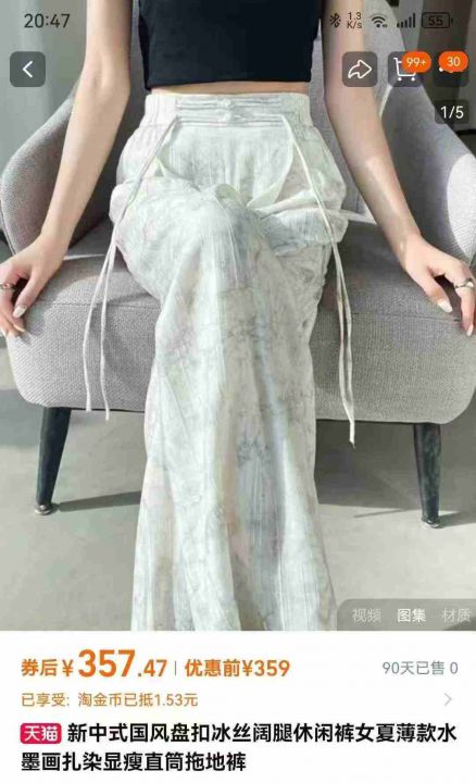 新中式国风水墨画扎染盘扣显瘦阔腿裤,[爱心]腰部包边,三种裤型,[666]1700件左右,尺码S-XXL,可穿80-150斤,工厂货无瑕疵,[勾引]分货加一