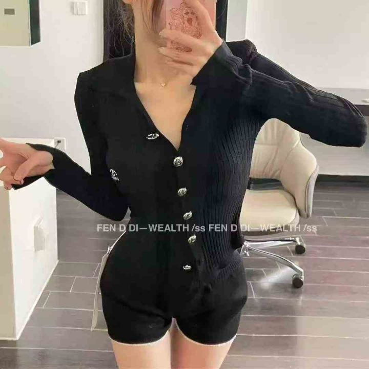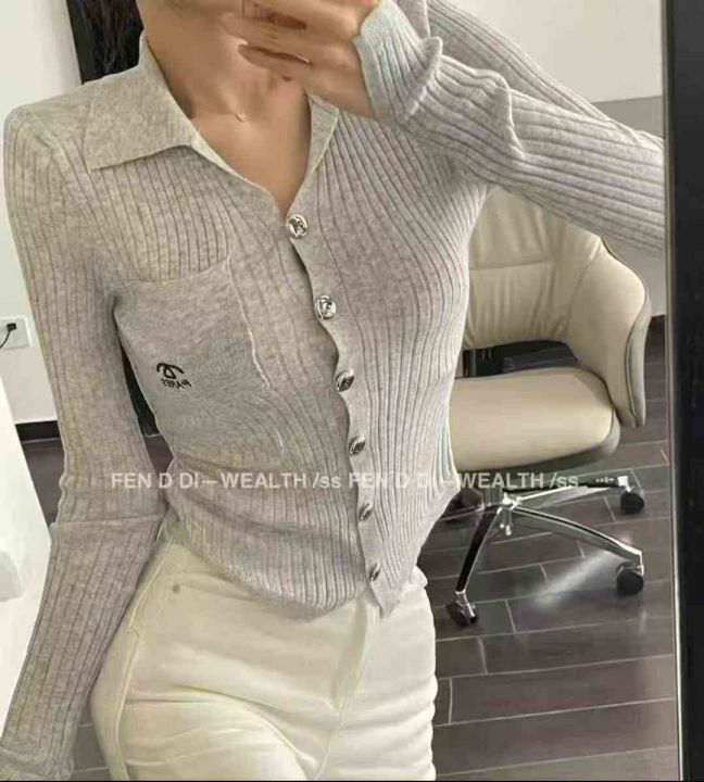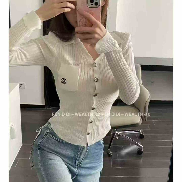 秋冬新款名媛风小香风翻领小刺标针织毛衣开衫,独立包...