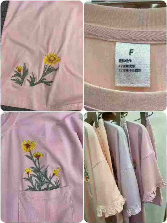 154套木代尔棉刺绣居家休闲套装。面料柔软舒适,后领包边,高弹力,品质非常好。F码(均码)可穿到125斤左右(模特图仅供参考)全清11.8分货➕1