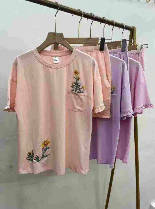 154套木代尔棉刺绣居家休闲套装。面料柔软舒适,后领...