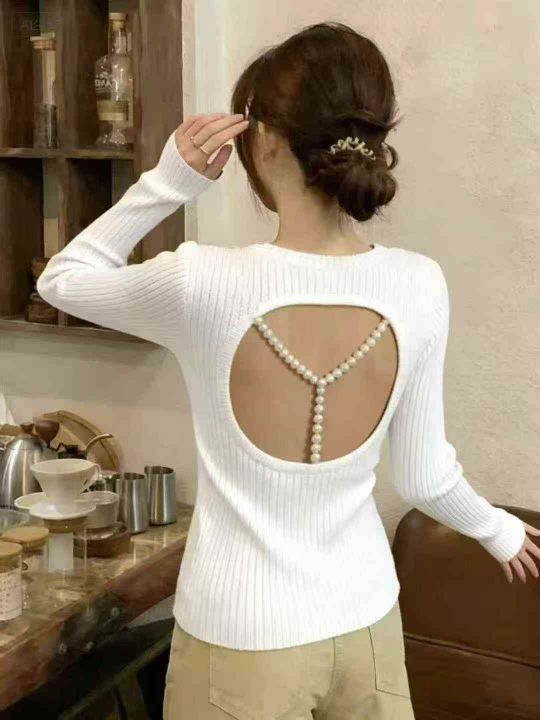 秋季新款设计款后背珍珠装饰坑条包芯纱套头毛衣,独立包装,均码面料软糯舒适弹力大,65件,全清7.9元超低价秒杀!。 货号:1323