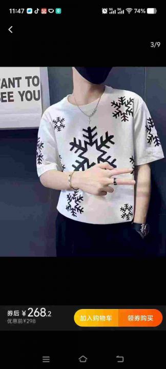 夏季男装圆领短袖T恤,后领包边,同一个牌子渐变色370件和印雪花260件两款共630件,M-3XL,独立包装吊牌,全清5.8元,分货+0.5