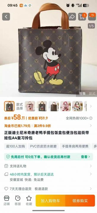这几个款迪士尼包包,还剩10000个,还有这几个款,全清可以授权。