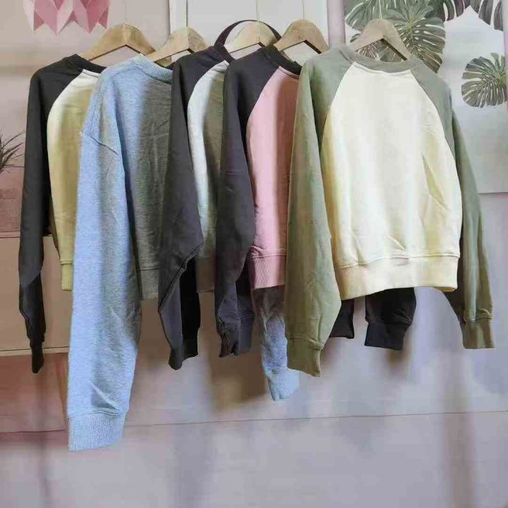 全清9.9元,短款卫衣插肩袖撞色女秋冬款2025新款无帽小个子宽松显瘦圆领上衣,S-L码,243件左右。 货号:1323