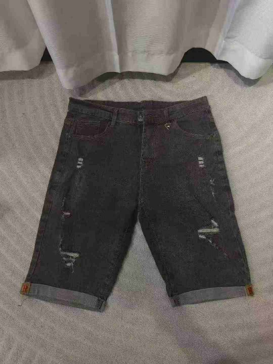 男士夏季韩版潮流破洞弹力牛仔短裤 数量160件左右 尺码28--36(34、35没看到有) 有腰牌带弹力 独立包装带吊牌 大货干净整洁