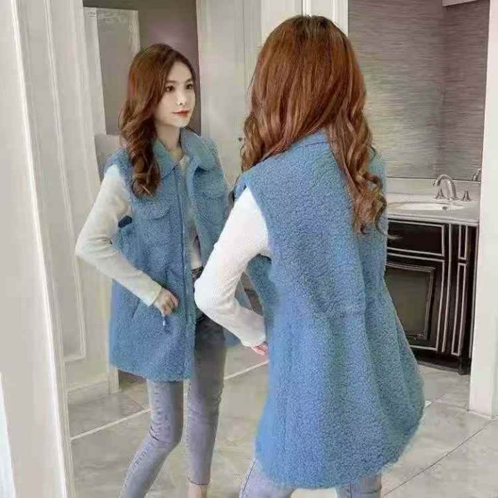 羊羔毛绒收腰马夹中长款皮毛一体背心坎肩外穿马甲外套,独立包装,整款两色,大货以蓝色为主,码数3-6码,数量183件,货号1121#39