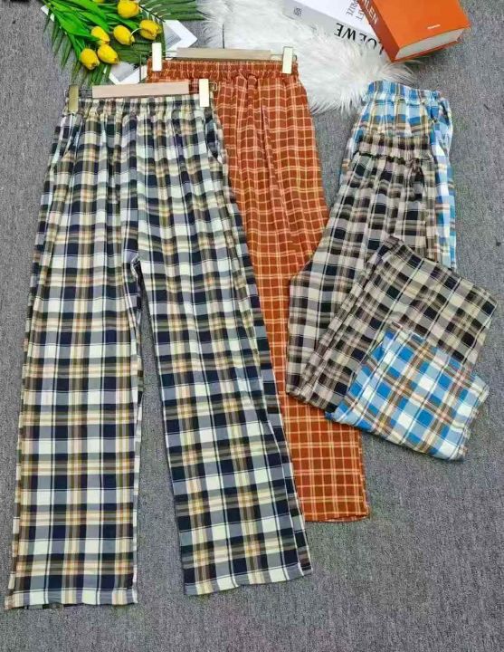 全清价6.9元气质薄绒直筒格子裤宽松显瘦高腰秋裤,独...