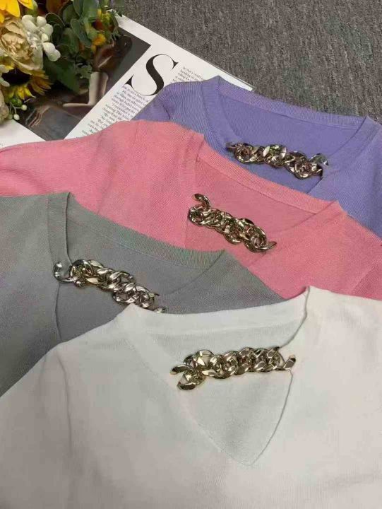 夏季新款链条设计感高腰甜辣妹风潮流小众针织短袖,独立包装,均码面料柔软舒适弹力大,84件,全清6.9元超低价秒杀!。 货号:1323