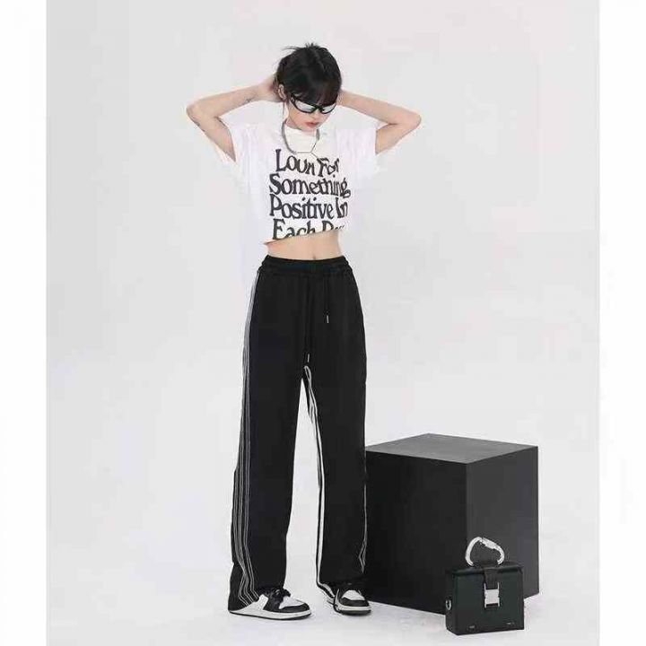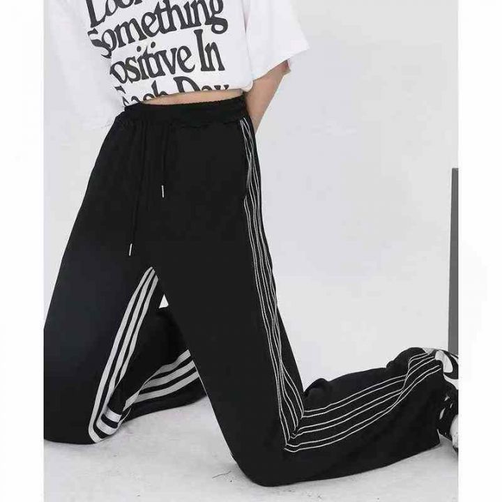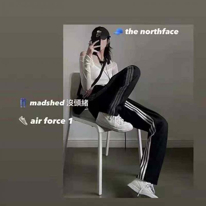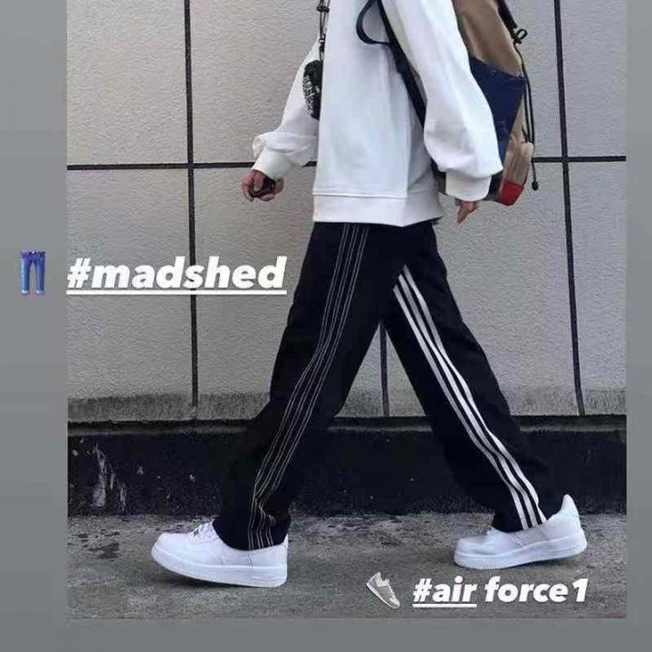 [發]黑色条纹欧美三杠直筒裤60条
