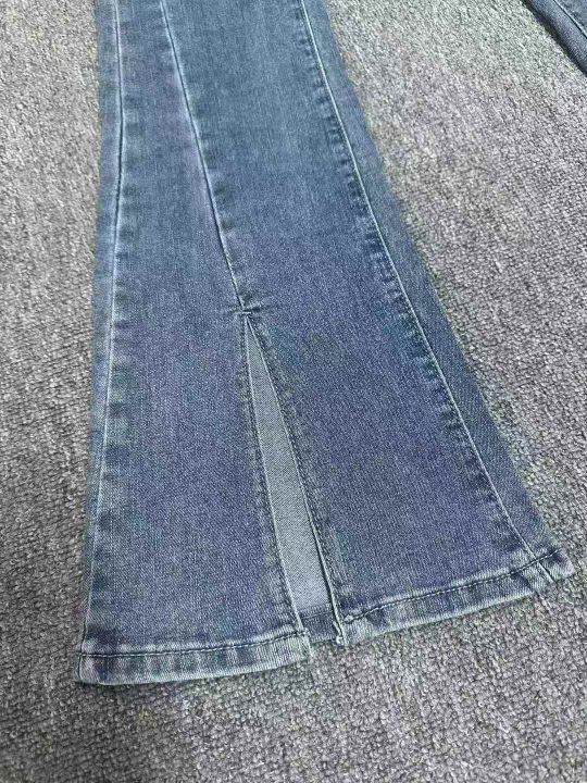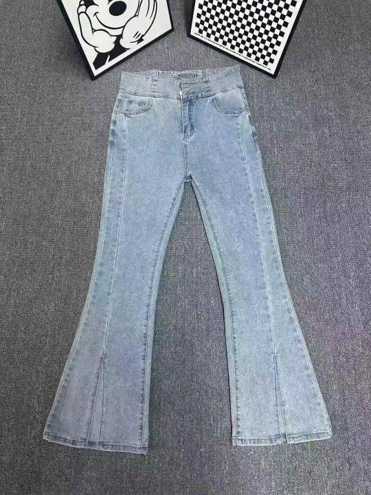 高弹力网红高腰喇叭开叉牛仔裤女,单款四色,独立包装...