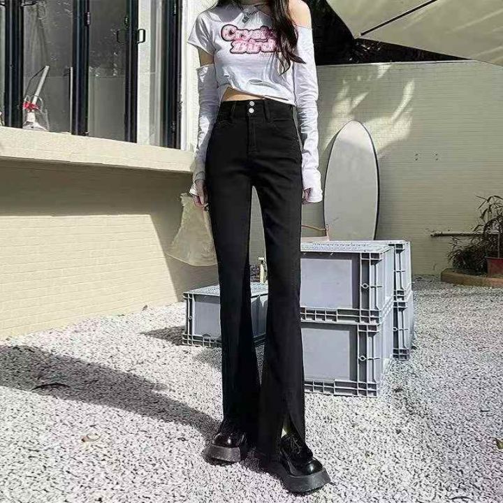 高弹力网红高腰喇叭开叉牛仔裤女,单款四色,独立包装带吊牌,码数25-32,数量350件,全清15.8元超低价秒杀!分货+1!
