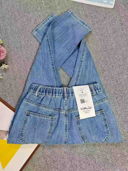 天猫下架洗水棉网红爆款松紧腰哈伦牛仔老爹裤,独立包...