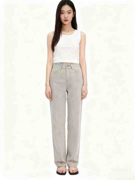 天猫下架美式复古黄泥色窄版直筒烟管牛仔裤,460件左...