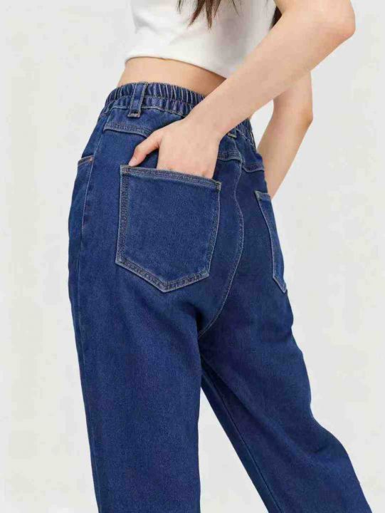 冬季新品松紧腰高弹力加绒牛仔裤,独立包装带吊牌,码...