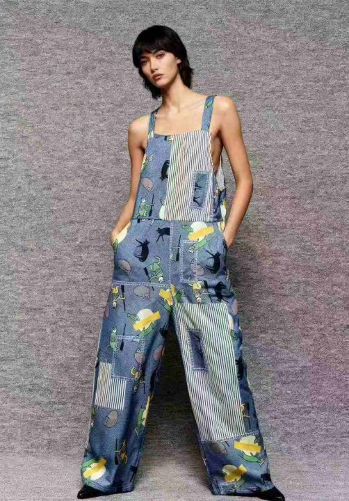 外贸时尚百搭减龄个性卡通印花背带裤,单款单色,有独...