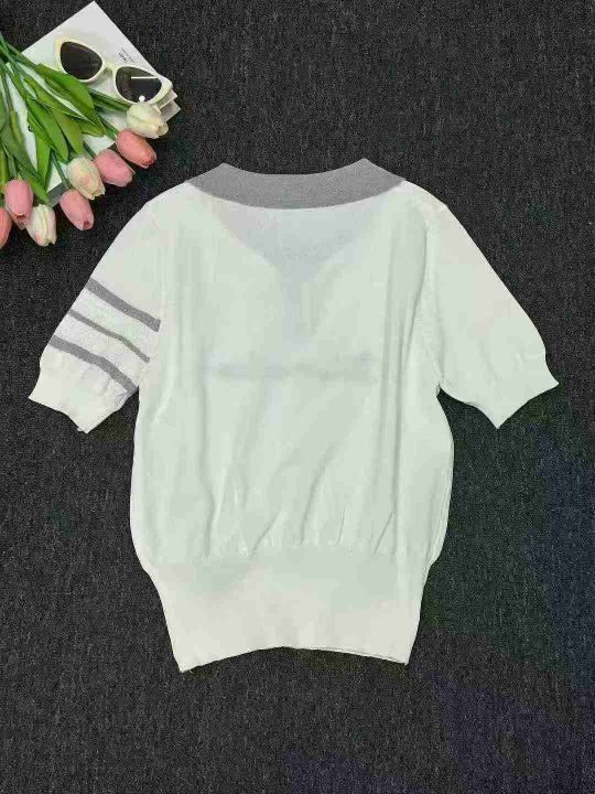 针织收腰夏季Polo衫女短袖翻领上衣,独立包装,100件...