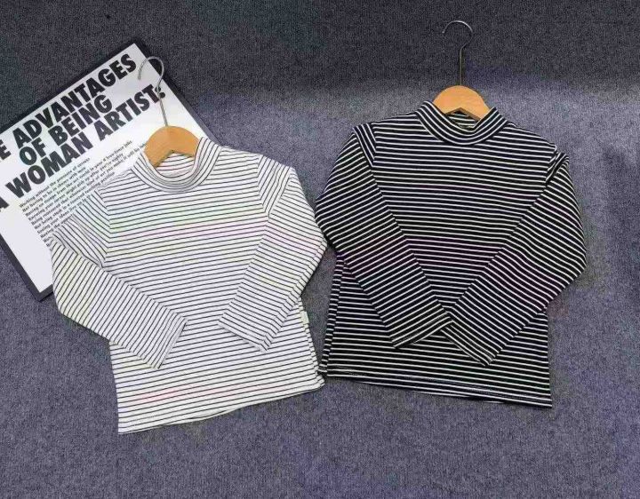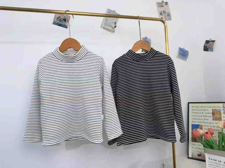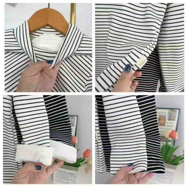 实体店下架时尚秋冬童装条纹加绒打底衣 200件左右 码数100-160 单款2色 货品干净 1手码1包 婴儿绒 面料柔软舒适 全清5.8