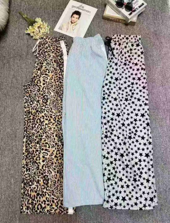 潮流女休闲裤豹纹星星条纹直筒裤,图片款,品质好,数量150件左右,码数s-xl,5件一包装,全清4.9(不分货)