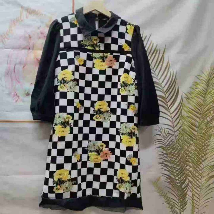 2.9元秒杀[發][發] 印花女装气质修身格子连衣裙,白色格子轻微染色,独立包装,码数36-38-40,数量956件左右。