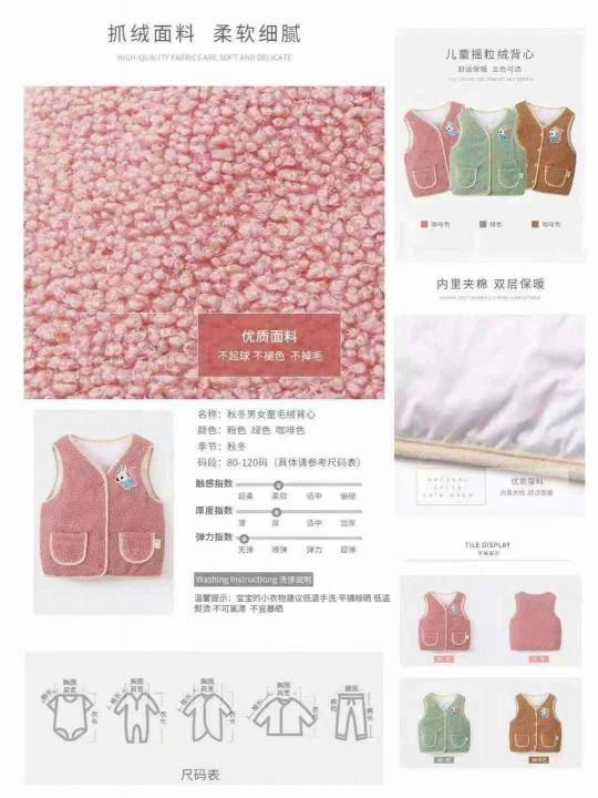 儿童马甲中小童男女童,秋冬泰迪绒加棉,背心保暖,独立包装,码数:80-100码,数量4200件,全清4.8,分货➕1
