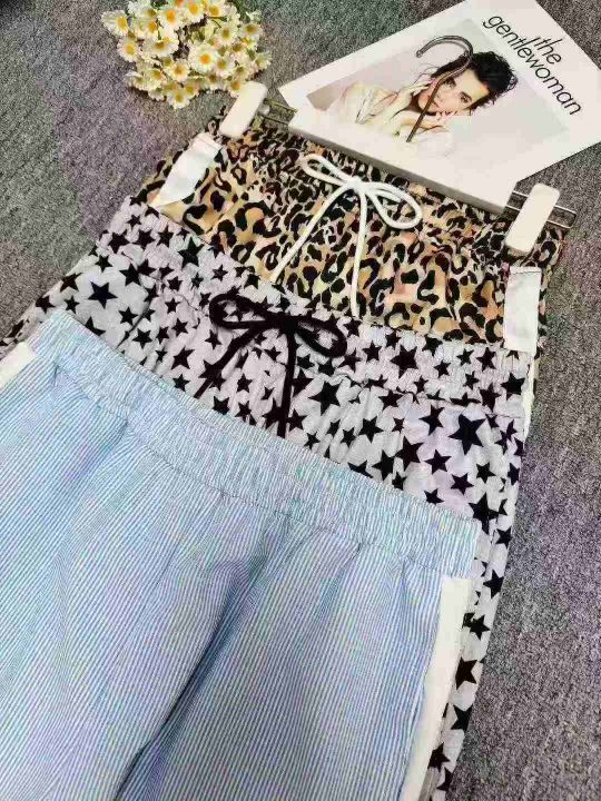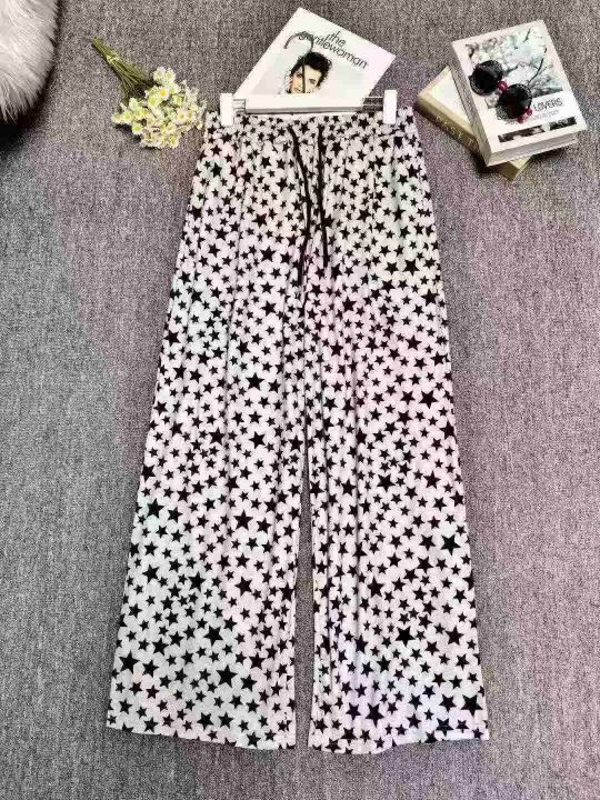 潮流女休闲裤豹纹星星条纹直筒裤,图片款,品质好,数量150件左右,码数s-xl,5件一包装,全清4.9(不分货)