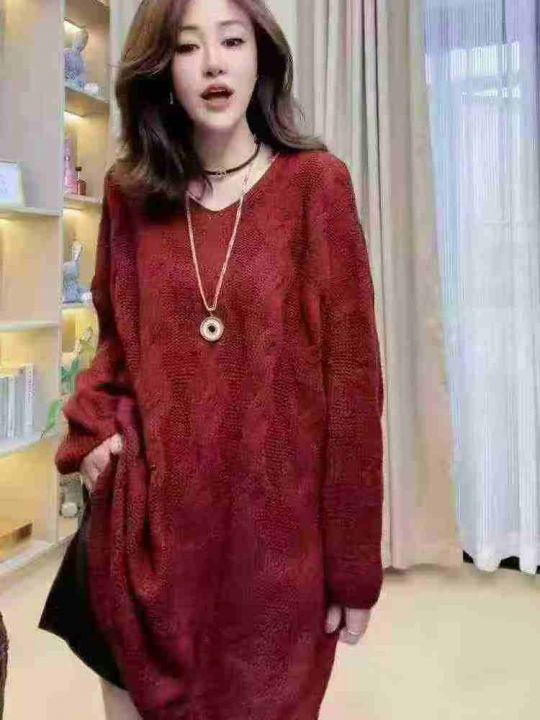 ① 秋冬大码慵懒风中长款针织毛衣!独立包装,可穿100...
