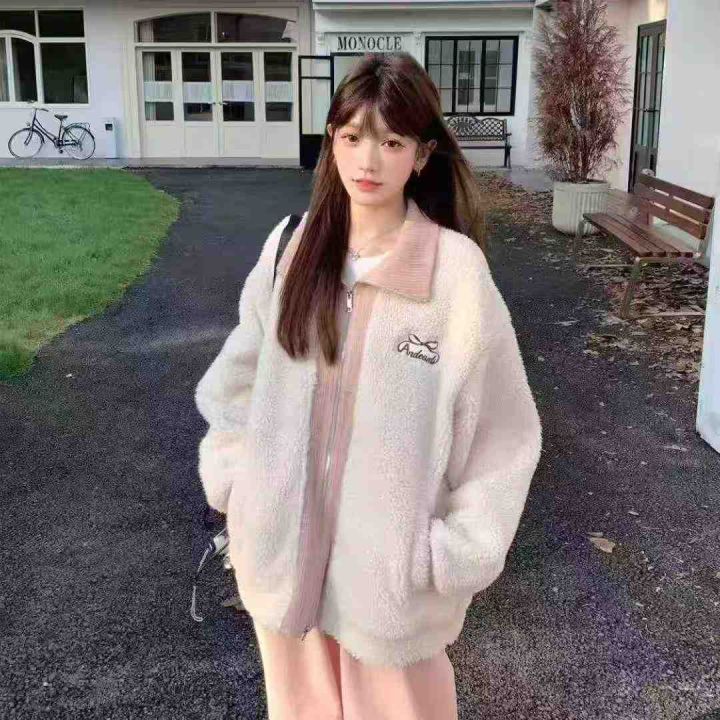 电商仓回收687件日系冬季新款学院风撞色羊羔毛内里加婴儿绒绒加厚外套,码数M-XL,宽松大版型,内里婴儿绒柔软舒适,质量款式都非常好,全部独立包装。分货➕1