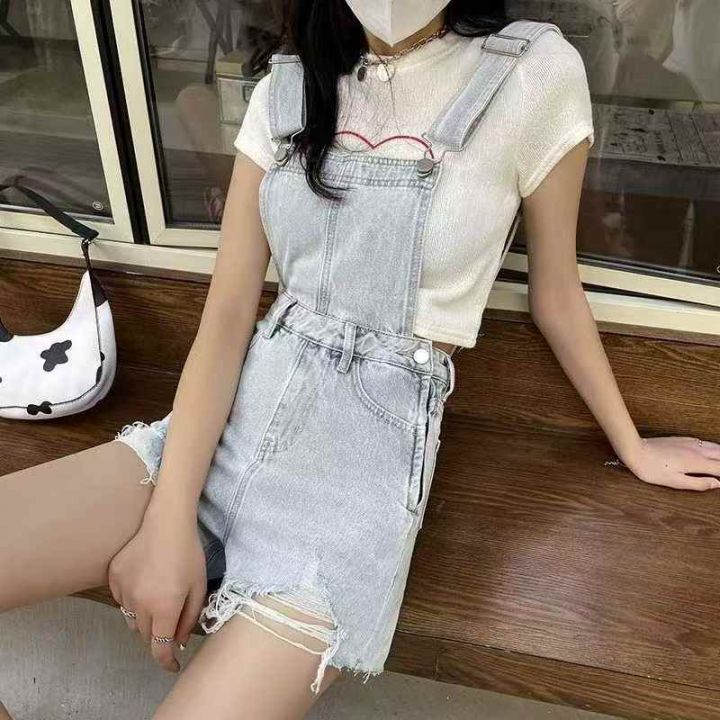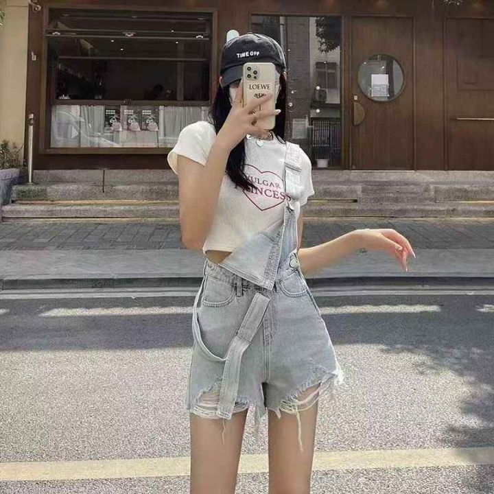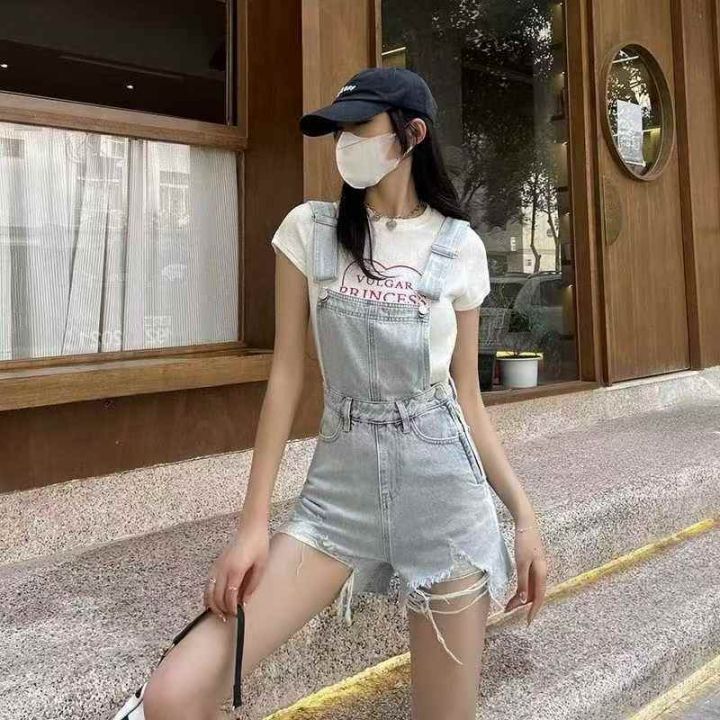 夏季新款洗水棉减龄气质设计感牛仔背带短裤,独立包装...