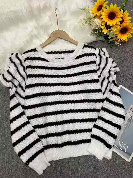 秋冬新款宽松慵懒风撞色条纹小香风套头糯米毛衣,独立...