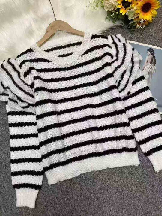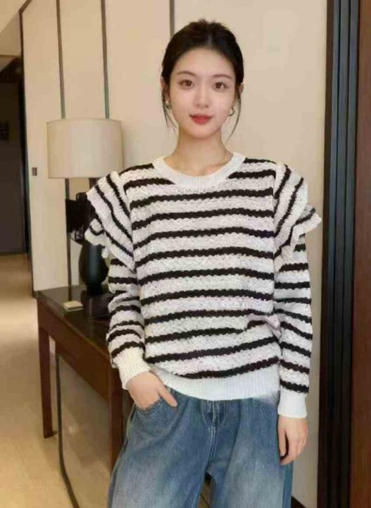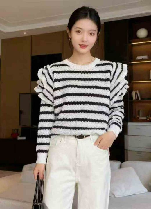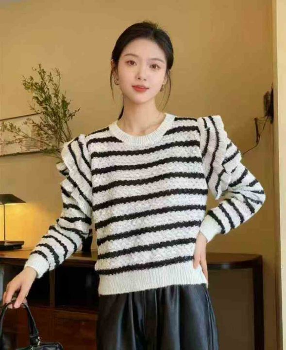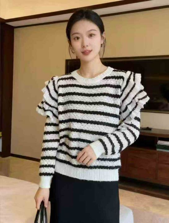秋冬新款宽松慵懒风撞色条纹小香风套头糯米毛衣,独立...