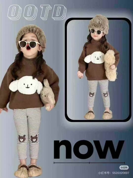 韩版儿童卡通条纹加绒加厚打底裤女童保暖修身长裤可外穿裤子,独立包装,小整款,120件,码数90-150
