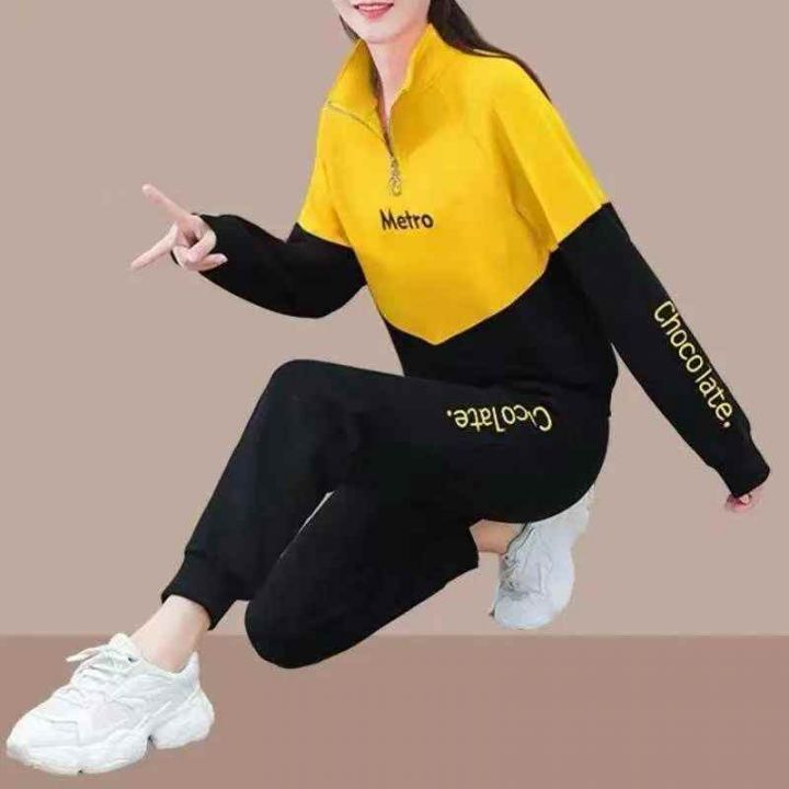 休闲运动服套装女春秋季新款减龄气质时尚炸街长袖撞色卫衣两件套,数量95套,码数smlxl,独立包装,全清8.5元