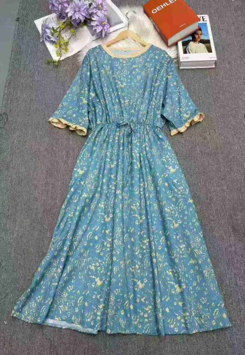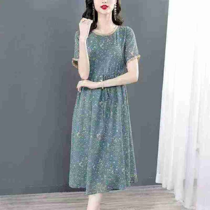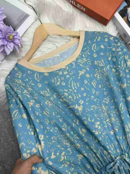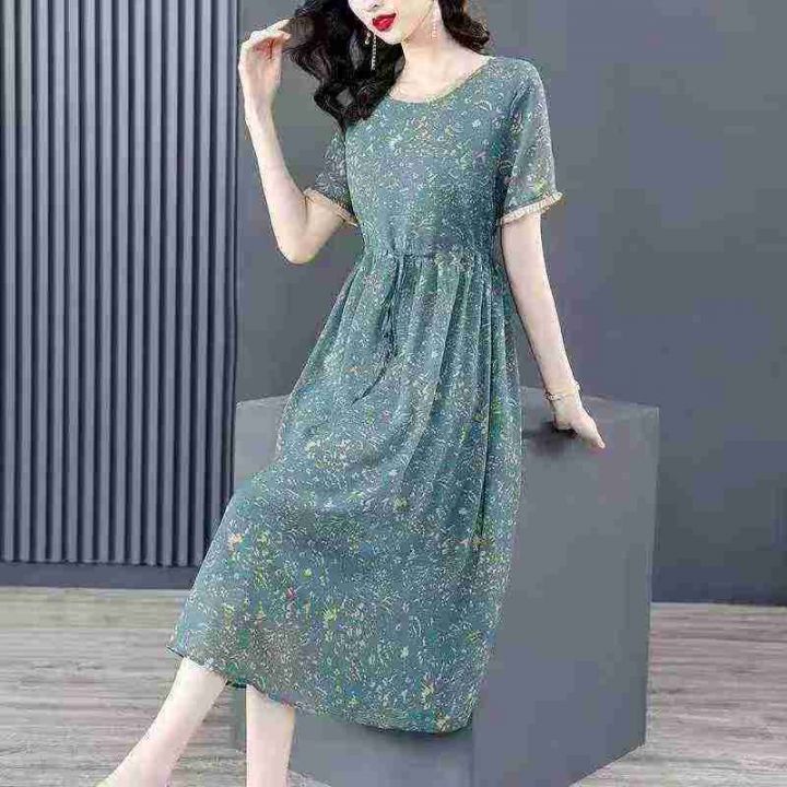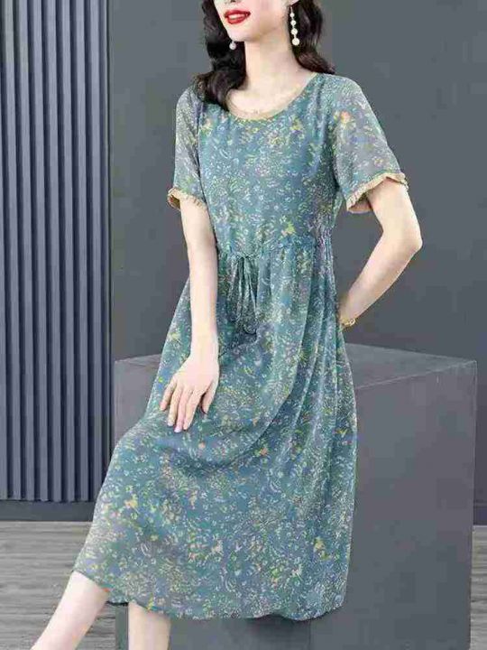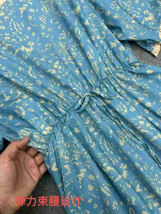 雪纺系带收腰气质显瘦减龄印花过膝连衣长裙,独立包装,码数2-7码,数量234条,5码裙长112厘米,货号121#1