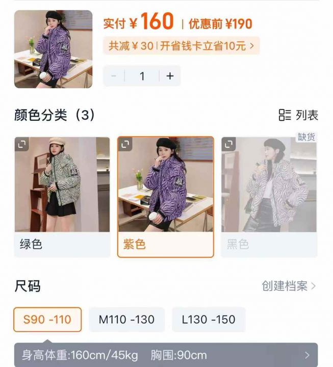 女装羽绒服,总数量1228件,码数S M L,最小110穿左右...